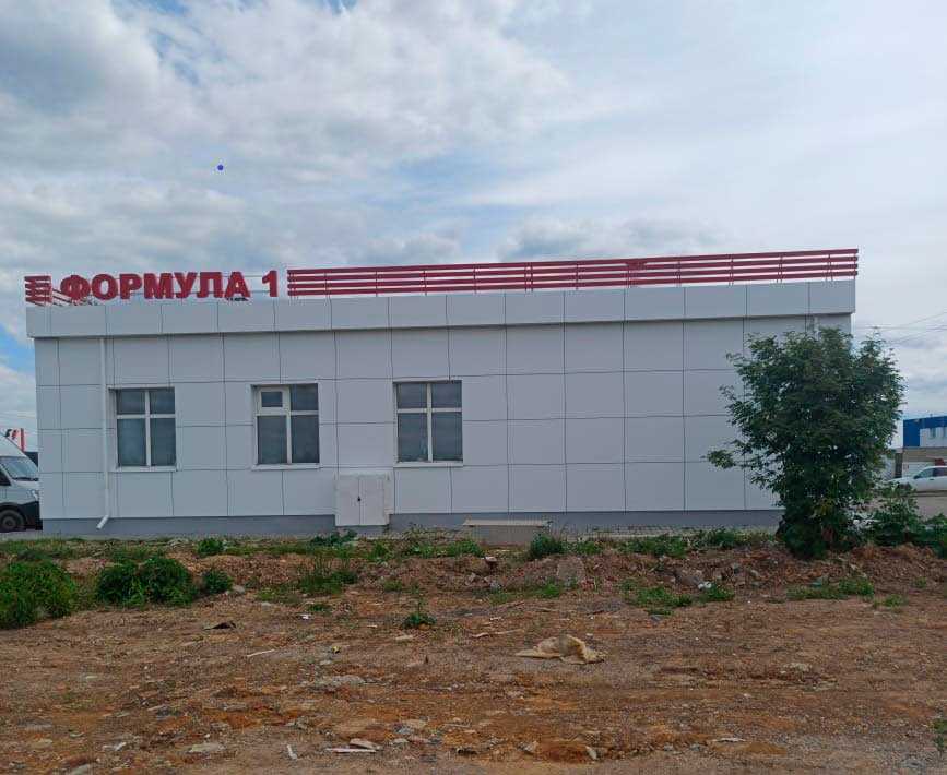 Были выполнены: Демонтаж старых конструкций, устройство вентилируемого фасада из алюминиевых композитных панелей, установка ливневой системы.